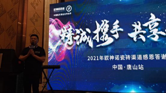 笃定致远,不负芳华。欧神诺将永不停下前进的脚步,为建设唐山贡献自己的力量。在答谢会现场,佛山欧神诺陶瓷有限公司大区总监梁倚萌先生也阐述了唐山第三个十年布局以及定下唐山近三年的新目标:销售额突破1亿。