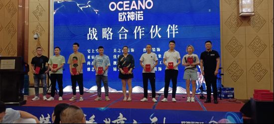 活动最后,现场60多家公司与欧神诺达成战略合作协议,并由唐山美居美家建材有限公司(唐山欧神诺)董事长沈志勇先生及总经理孟宪宝先生现场颁发战略合作证书,誓师未来,雄关漫道,携手共创美好未来。