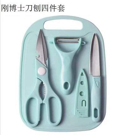除了锅和铲之外,配上刀具砧板厨房工具才算齐全。与其单一买,不如一次性配齐!“真快乐”这款厨具四件套包含了水果刀、剪刀、瓜刨、菜砧板,精致小巧,并且拥有北欧绿、北欧蓝两种配色,满足你的不同喜好。