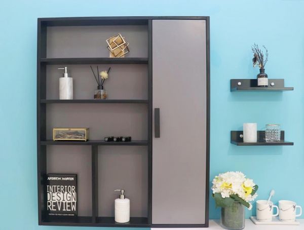 台下柜上方,有着两层独立于墙面的不锈钢置物架,搭配着镜面下方的置物台。可以用于放置一些常用的杯子、毛巾、香薰等小物品,随放随拿,美观实用。不锈钢置物架的左边还搭配着一个拥有超大收纳空间的墙柜。个柜体采用半封闭式柜门,通过不同大小尺寸的空间分割,美满足日常沐浴用品、化妆品、等分类收纳。