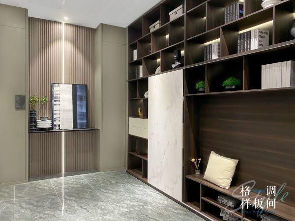 在武汉的样板间展厅里,梦天木作独特的门墙柜一体化设计,涵盖了通顶门、通顶墙、通顶柜,实现了美学风格与功能主义高度统一的梦天木作“健康完整木作解决方案“。在新现代简约风格的空间呈现上,梦天木作遵循“简而不凡”的设计理念,挣脱传统风格边界的束缚,摒弃复杂的造型与装饰,以克制的设计笔触、简约的线条与配色,呈现出简洁、舒适的空间氛围,强调生活的自由舒适感。此外,在细节设计上,整个展厅注重门墙柜连接收口的自然过渡,充满了对产品的精雕细琢和对品质的完美追求;采用的平墙板和纵横板搭配开放格设计,让整个空间同时具备了视觉美感与收纳功能,相得益彰。