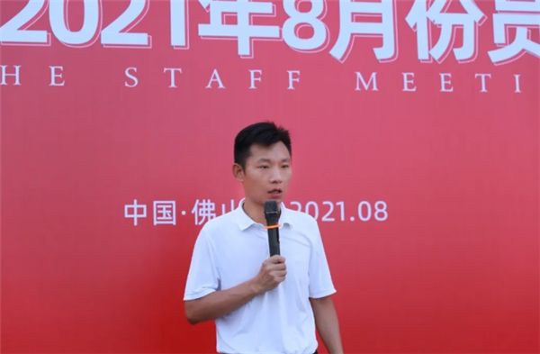 公司总经理胡超作总结讲话。胡总首先向获得表彰的个人表示祝贺,也感谢全体员工为工作所作出的不懈努力。亿合门窗7月份所获得的荣誉离不开亿合人的每一份贡献,正是这样,我们应该要努力工作,不断提升自己,才能让亿合门窗的发展才能走得更远。