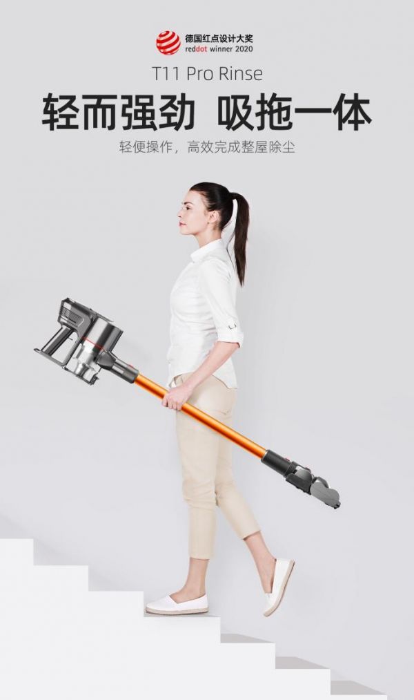 小狗T11 Pro Rinse吸尘器采用吸拖一体的清洁方式,搭配防水软绒地刷和240ml容量的磁吸式水箱,吸口吸走地面浮尘,高纤维拖布湿拖地面尘污,吸尘+拖地同时完成,避免跪地擦拭,减少接触化学清洁剂,有效呵护双手。机身采用趋小化、轻量化设计,主机身仅重1.48KG,长时间清洁不费劲。