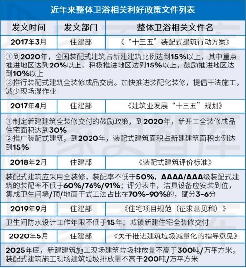 ◎装配式建筑相关政策助力,整体卫浴行业渗透率低位提升