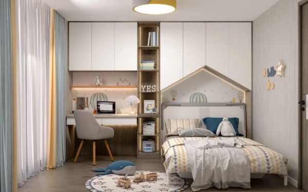 充足的收纳空间,也能在一定程度上为孩子释放更多的活动空间。孩子活泼好动的天性不应该被拘束,房间内留出一定的活动空间,家长可以陪伴孩子学习、玩乐,参与到孩子成长的点点滴滴。