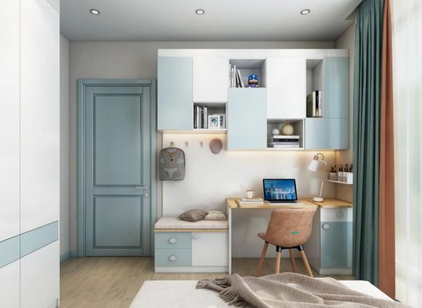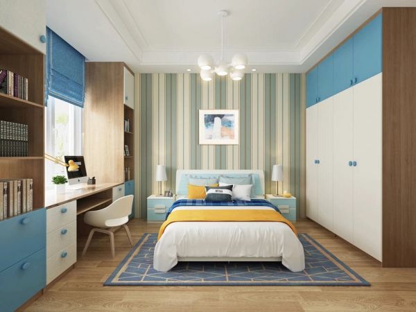 儿童房最好布置在朝南的位置,充足的阳光不仅能给房间杀菌,而且也能让孩子的心情变得轻松愉快。在室内灯光的布置上,除主灯外还要搭配辅助光源,一般来说,青少年房的灯光应以暖色调为宜(色温为3000-4000K),否则会有损视力。
