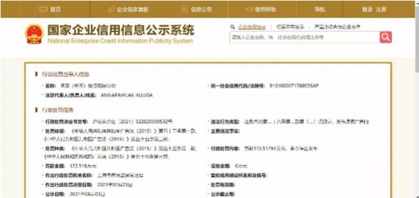 据国家企业信用信息公示系统显示,8月3日,宜家(中国)投资有限公司新增一行政处罚公示,因涉嫌违反《中华人民共和国广告法》的相关规定,发布虚假广告,被上海市市场监督管理局罚款172.518万元,并责令停止发布。