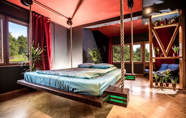 什么?睡床也可以悬空?悬吊在半空的睡床听起来很好玩,而且完全反映了屋主对于创意和趣味的追求,不需要其他的摆设也可以透露出个人风格。
