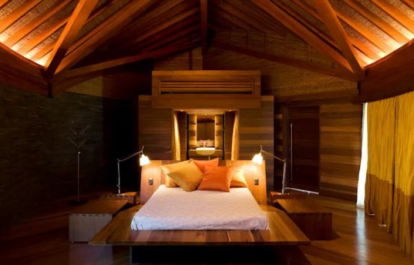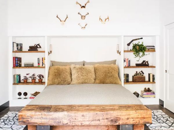 原始风的睡床以原木为主要材料,把自然元素融入卧室。人造毛枕头有助提升床的原始感觉,舒适又好看。