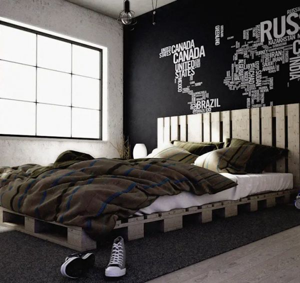 运货托盘也可以当作床架使用喔!只要将木制托盘稍作处理再上一点颜色,就是环保又实用的睡床床架了。