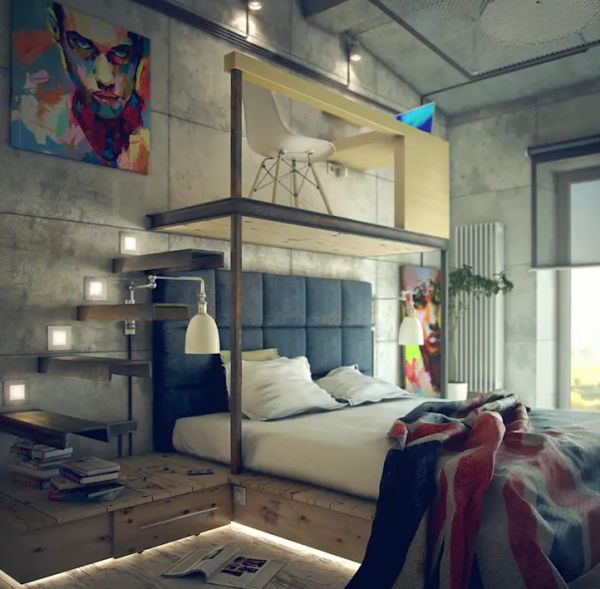 这种上层是工作室,下层是睡床的设计完全颠覆了我们一般对卧室的刻板印象,连楼梯都是充满现代设计感呢!这种新点子非常适合挑高的房子!