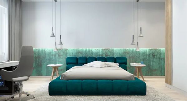 谁说睡床一定要有床架呢?这种软包床铺舒适之余也展现了个人风格,配上真丝材质的被子,质感瞬间提升。