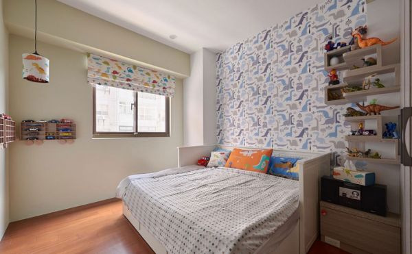 悠美居乡村风TIPS.05孩童房的恐龙壁纸及展示层板设计营造童趣
