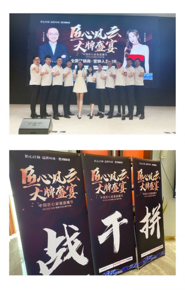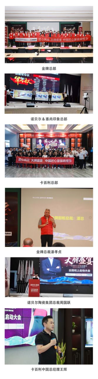 8月6日下午,由金牌厨柜、诺贝尔瓷砖、塞尚印象瓷砖、卡百利艺术涂料4大品牌联手打造,创赢科技系统支持全案营销执行的“匠心风云 大牌盛宴”818中国匠心家装直播节在各大品牌总部正式启动。