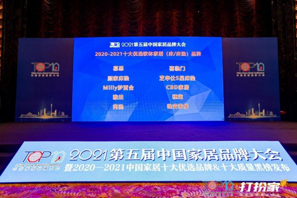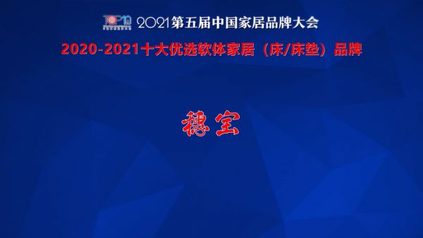 2021年7月19日,2021第五届中国家居品牌大会在广州举行,公开发布36个“2020-2021中国家居十大优选品牌”榜单,穗宝床垫获评“2020-2021十大优选软体家居(床/床垫)品牌”!