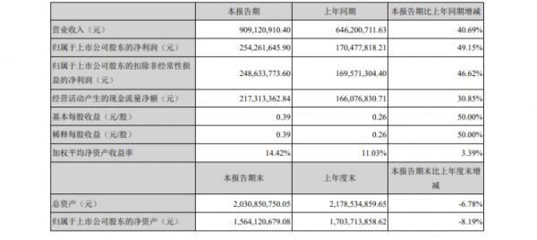 8月9日,浙江美大(002677.SZ)发布2021年半年度报告,公司实现营业总收入9.09亿元,较上年同期增长40.69%,实现归属于上市公司股东的净利润2.54亿元,较上年同期增长49.15%。