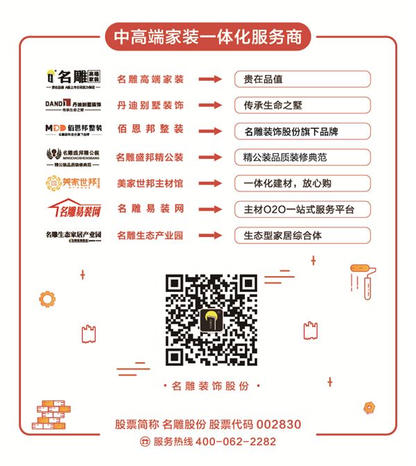 名雕装饰股份在追求品质的道路上不断升级家装材料的耐用度与健康品质;不断提高施工工艺的科学性和环保技术含量;从工艺、辅材到主材的研发,一直引领家装行业技术标准。把每一项匠心品质的专利技术,融入到施工的每一处细节中,让每一位客户享受到高端的施工质量,力求对客户负责,对专业负责。
