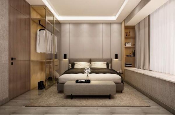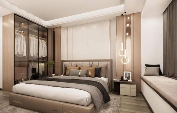 豪华主卧套间,集卫浴、飘窗、衣帽间于一体,臻享优雅品质生活每一天。主卧采光通风俱佳,与山水无界,与自然为邻,满足高品质诗意生活的理想。