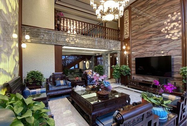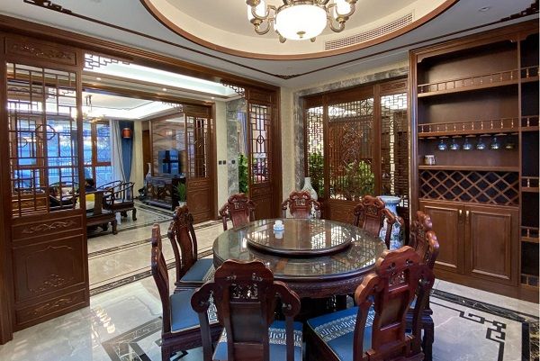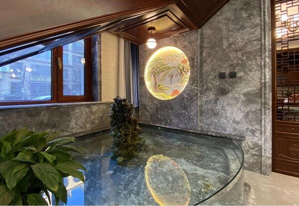 石材与原木的搭配,刚中带柔,尽得中式精髓