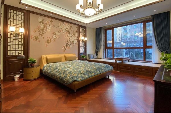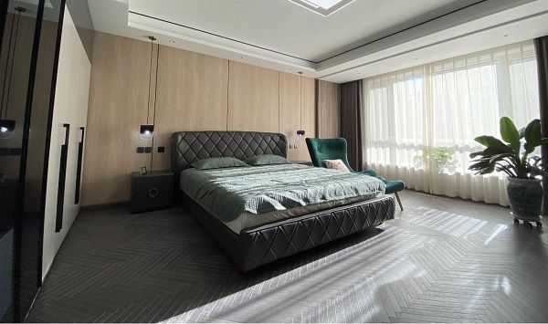 A:在我们海城,卧室基本上都用木地板,这跟当地的供暖情况和木地板特性有关。海城市冬季是地热采暖。一般停地暖以及冬季地暖开启前的一个月前后,木地板就发挥好处了,它不像瓷砖那么冰凉。就我个人来说,我是特别喜欢用实木的,因为它浑厚、天然、高级、有价值。所以我在设计中,卧室地面多会推荐实木地板,而我服务的业主大多选择天格地暖实木地板,因此用得天格的产品最是得心应手。我想这主要源于三个方面:首先天格产品质量好,产品品种多样,契合各种装修风格;其次,天格的实木地板锁扣长,呈虎口状,特别抗热胀冷缩;最后是天格售后服务也特别好。实木地板的使用效果,七分靠安装,天格地板拥有国内唯一的安装服务站模式,目前300多安装工程师都是公司直属,经过总部考核合格后才持证上岗的。这一点让我服务的业主和我本人特别放心,没有后顾之忧。