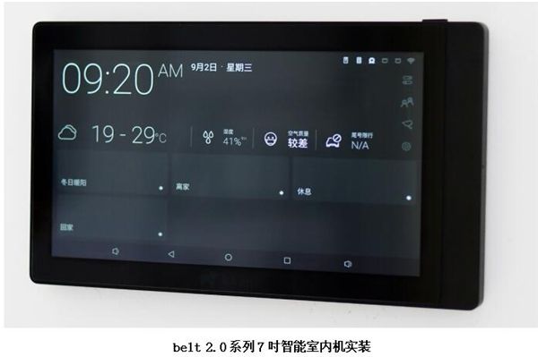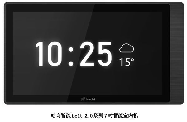 为此,智能室内机普遍采用7吋屏和10吋屏。例如哈奇智能belt 2.0的室内机产品就使用7吋IPS高清屏,分辨率为1024×600,内置8路GPIO(通用型输入输出),可用于安防信号采集,在Wi-Fi链接状态下支持户户通话、管理中心通话、手机APP通话等多种数字可视对讲功能。