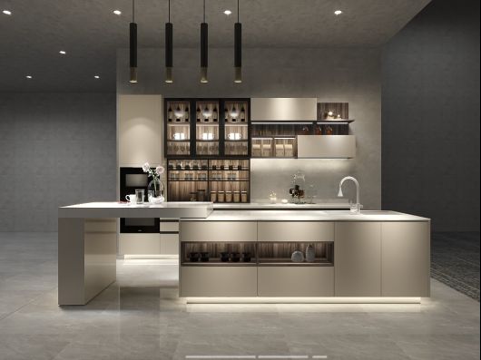 领尚橱柜通过配置岛台或者吧台增加厨房置物空间,实现环形操作,并且支持多人操作烹饪,更有电动平移设计,可根据不同实际使用需求伸缩调节岛台长度,自由扩充台面空间,当一家人在厨房中共同做饭时,互相分工,互相合作,增加互动的乐趣,还可创造共同的开心记忆,让厨房烹饪不在枯燥单调。