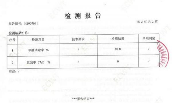 针对人造板的长期重度甲醛污染问题,市场上不仅有其专门的治理产品——人造板甲醛清除剂、人造板制品用甲醛清除剂,而且国家早在2015年前后就专门制定了国家标准——《人造板及其制品用甲醛清除剂清除能力的测试方法》GB∕T 35239-2017(以下简称人造板甲醛清除剂标准),人造板甲醛清除剂标准中规定,用“清除率”衡量人造板甲醛清除剂清除甲醛能力的强弱,用“衰减率”衡量产品的长期有效性。一般来讲,“清除率”大于90%且“衰减率”小于20%,就可以视为合格的人造板甲醛清除剂。