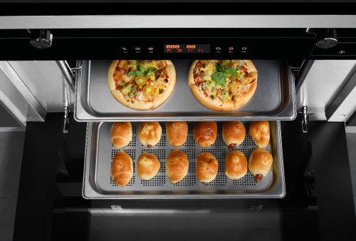 结合用户使用生活场景,以及忙碌生活习惯,设计一机多用,上方的灶台可煎炸焖炖,下方则蒸烤箱同步进行工作,在烤箱内置U型加热管,搭配3D热风环流,使整体内腔热力均匀分布,即便是边角处的食材都能烤到,色香口感更是一应俱全。