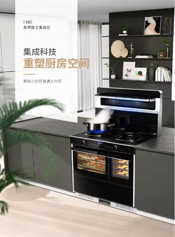 亿田S8C蒸烤一体集成灶,以创造性的独立蒸/烤箱实现同步蒸烤模式,独立腔体,互不干扰,一次搞定一大桌。在这个“重量级”,亿田来创造纪录!