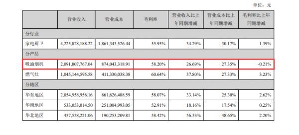 其中,今年上半年,吸油烟机、燃气灶及消毒柜作为老板电器的第一品类群,分别实现营业收入20.91亿元、10.45亿元、2.39亿元,同比增长26.69%、37.8%、4.76%,合计占营业收入的比例为78.04%。在传统厨电品类实现营收的稳步增长。