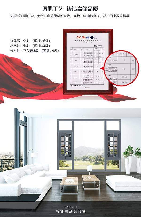 选择一扇高品质的门窗,是对品质生活追求的象征,欧铂曼门窗产品系列齐全从工艺细节中精益求精,确保产品在隔音降噪、隔热保温、密封防水、安全稳固、防盗防坠等性能更胜一筹,只为与您“静”享品质生活!