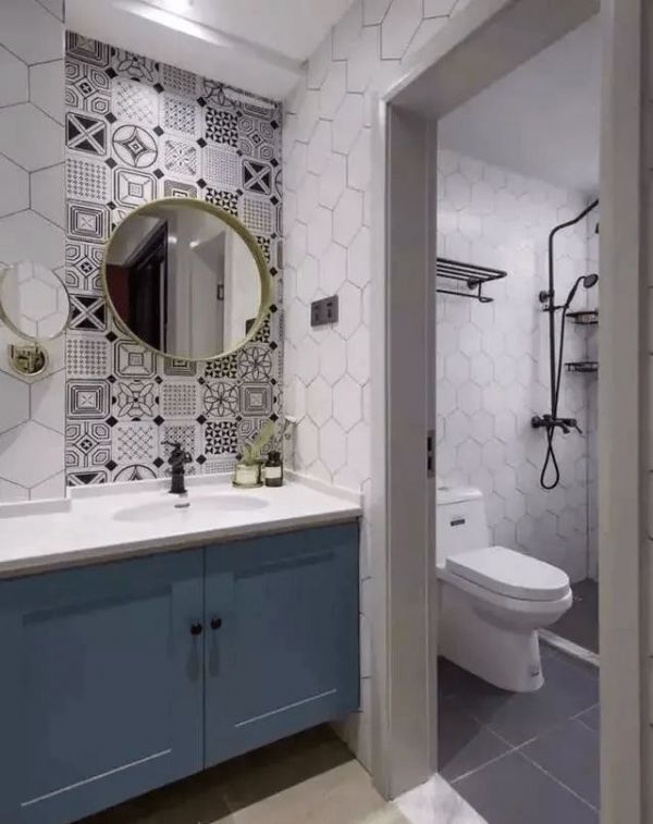 或者是用彩色的小瓷砖来做门槛石,彩色的门槛石给这个空间带来更多的丰富感,通常运用在卫生间和走廊、卧室之间,更有活力。