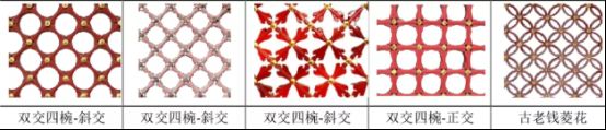 一般由两根或三根木棂条相交,并在相交处附加花瓣而成为放射状的菱花图案,称为“双交四椀菱花”样式或“三交六椀菱花”样式。