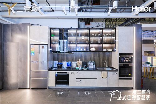 不过从今往后,这些事都可以交给三翼鸟一站式定制厨房。就拿专为毕业生、新婚夫妇等年轻人打造的智慧新潮厨房来说,收纳规划是首当其冲的。现场展示的卡萨帝冰箱能做到0cm嵌入,100%利用厨房空间;而包括插座、水路等,也会有专人在前期提前设计;针对他们“上班996,外卖007”的饮食习惯,三翼鸟智慧厨房里的冰箱会根据用户身体数据推荐菜谱,还可以联动烤箱自动烘焙,让做饭更简单。
