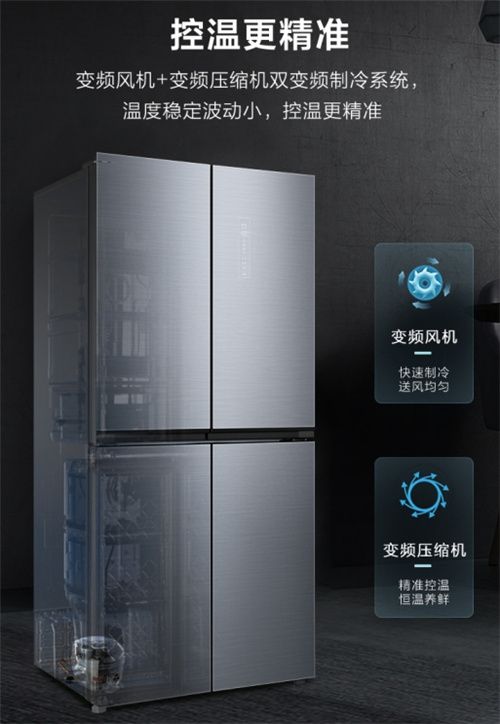 作为一台养鲜级的冰箱,TCL R491P8-U大容量十字冰箱还内置感温雷达,可以实时检测到舱内温度的波动,同时搭载最新一体式双变频科技,变频压缩机和风机接受到信号后,会立即加速运转,定向送风,快速控温,实现24小时的±0.5℃精准控温,恒温养鲜,让食物几乎不受外界空气影响,从而保鲜更长久。