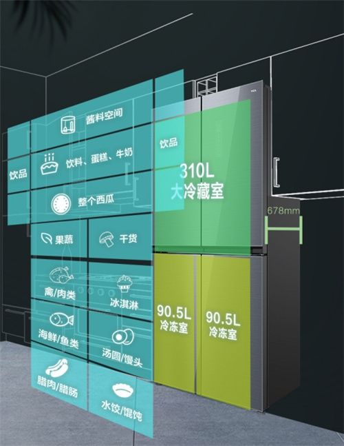 作为一款时鲜系列冰箱,TCL R491P8-U大容量十字冰箱的360°生态养鲜系统尤为出色,其养鲜四重奏为冰箱打造了天然的储鲜环境,让食材养在自然里。