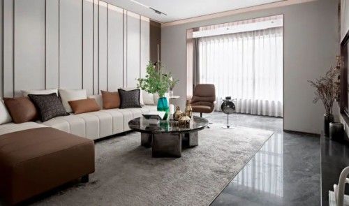 客厅墙面选用大理石去诠释墙体的丰富性,迥别于传统瓷砖的冰冷感,更为斑斓生动。渗透柔和光线,折射出另一番空间,虚实之间,自有乾坤。