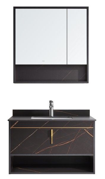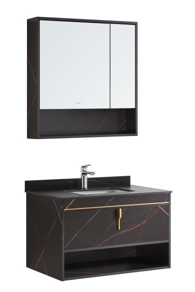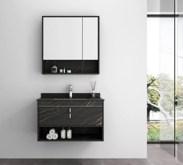 这一点,日丰卫浴最新推出的酒店风浴室柜GPJ2098-080,就完全符合当下市场流行趋势及用户的审美需求。在颜色上,GPJ2098-080浴室柜主要采用了劳伦黑金经典色,黑金表层一体式的仿石纹理,将岩板的高冷和实木的温暖感完美结合,既时尚又大气,尽显都市气质。材质方面,则优选多层实木板为主材,加上面漆处理工艺,令产品不仅具有很好的耐腐蚀、耐刮磨、防火耐高温性能,且不吸污,易清洁,有脏污湿毛巾擦拭即可清理干净,非常便捷。