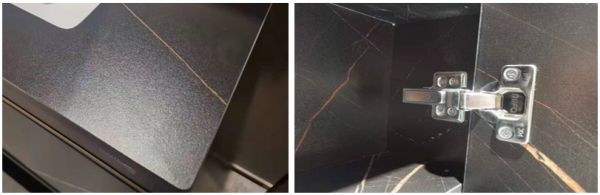 好产品不流于形式,好产品不流于表面,细节的处理往往令人惊艳,而“酒店风”设计则更注重这点睛的“灵魂细节”。日丰卫浴GPJ2098-080浴室柜在细节上的处理非常考究,镜子延续了日丰卫浴浴室柜一贯采用的无铜无铅环保镜,具有光滑平整,清晰成像,快速散雾等优势;铰链则是日丰卫浴专供的缓冲304不锈钢门铰链,搭配国内知名品牌导轨,可推拉10万次以上,远远高于国标2倍(国标5万次)。