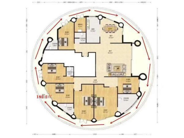 这套户型差不多,但阳台更夸张,182㎡的大阳台,还是环形的,我!