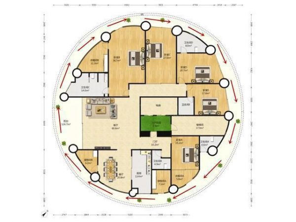 这个房子看着只有一个阳台,但同样也是绕房一圈,是妥妥的360°环形跑道户型,一个阳台面积124㎡,比我家一套房都大,在家跑跑步,遛遛狗,这样的房子你喜欢吗?
