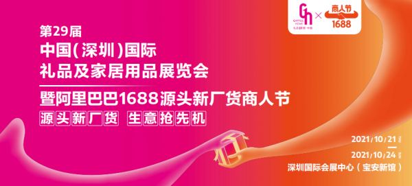 今年10月21-24日,深圳礼品展主办方励展华博将再度携手阿里巴巴1688,迎来30万平米中国礼业旗舰级超级大展——第29届中国(深圳)国际礼品及家居用品展览会暨阿里巴巴1688源头新厂货商人节源头新厂货生意抢先机 (简称:第29届深圳礼品家居展暨1688源头新厂货商人节),为广大中小微型企业打造“线下+线上”一体化的交易机会,为企业采购、选品、洽谈提供高效平台。
