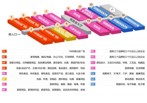 1688源头新厂货馆总计8万㎡展出规模,打通1-4号展馆,围绕“趋势品+源头新厂货”筛选近3000家优质源头工厂加持助力,根据跨境、抖快直播、团购买家等主要采购场景,展品涵盖居家日用品、日用餐厨用品、收纳清洁用品、家纺家饰、玩具、美容护肤/彩妆、家用电器等20大品类。与深圳礼品展原有的20+品类形成互补辉映,呈现更多消费终端的产品链条,给买家提供更丰富的采购选择。