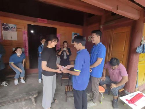 了解到这5个学生面临的困境后,云南区域经理朱尚发带着提前准备好的物资,便与团队来到了学子们所在的小山村,探访他们。