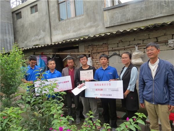 走过湿滑的乡间小路,日丰团队与学生及其家人见了面。互相问候之后,朱经理代表日丰集团对同学们进行了捐助,整个过程没有隆重的仪式和客套,实在的帮扶行动就像一股暖流流淌进每个帮扶对象的心中,令人感动。同学们那青春的脸庞上洋溢着真诚的笑容,感激地表示自己会将所有的精力投身在学习中,以回报恩情。