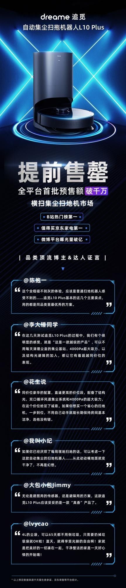 全平台提前售罄!追觅科技自动集尘扫拖机器人L10 Plus首发销售额破千万