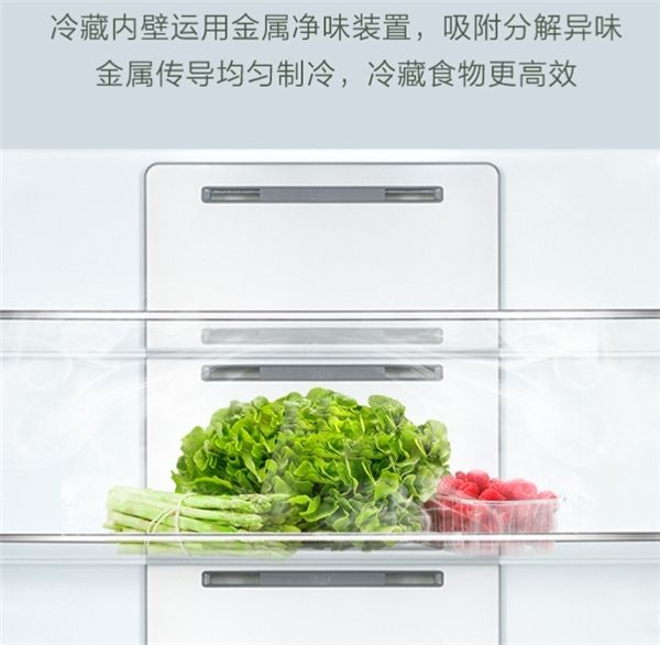 普通冰箱只要内部食材稍多,容易产生难闻的异味,甚至导致食材之间相互串味,那势必会影响孩子的胃口。在TCL R491P8-U冰箱上,家长大可不必担心这个问题。它冷藏室风道背板采用金属材质,除了能利用金属热传导快特质,实现制冷均匀、长效蓄冷之外,冷藏内壁运用的金属净味装置,能高效吸附并分解异味,每次打开冰箱,闻到的都是清新自然的味道。