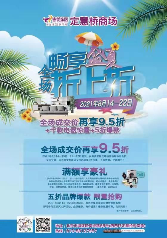 8月14日至22日,集美家居定慧桥商场“畅享盛夏 全场折上折”活动期待新老消费者的光临。
