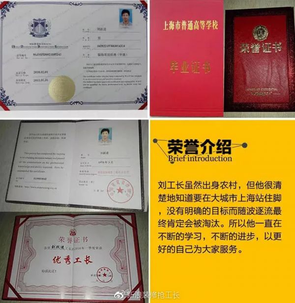 刘跃进,桐城工长在上海,新浪装修抢工长精英特训工长,全国家装项目经理中级职称。