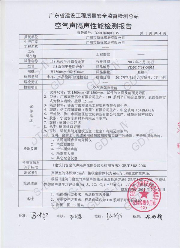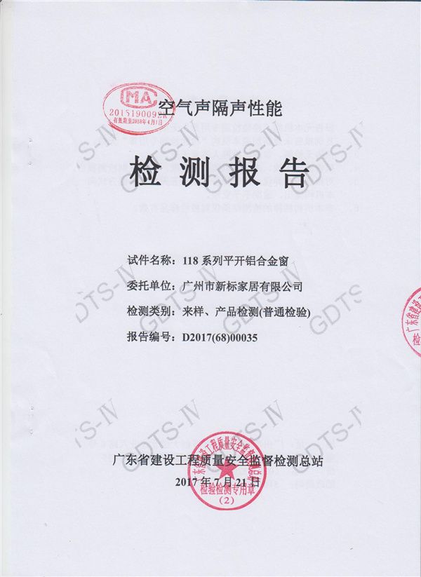 新标家居全候系统铝合金门窗育儿环境优标产品查验报告 公示